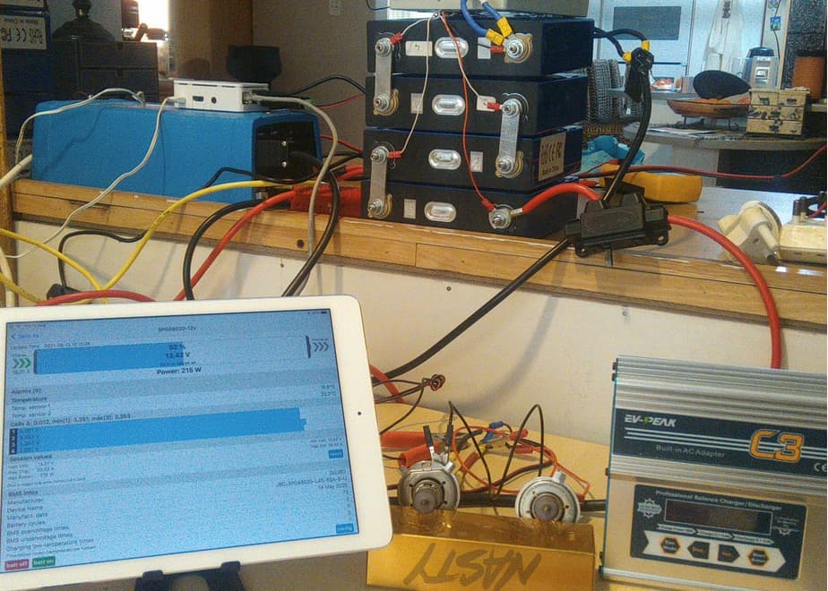 150ah cells are out, 12 x 100ah 2nd life cells with 4 x 150ah cells in the temporary bank.